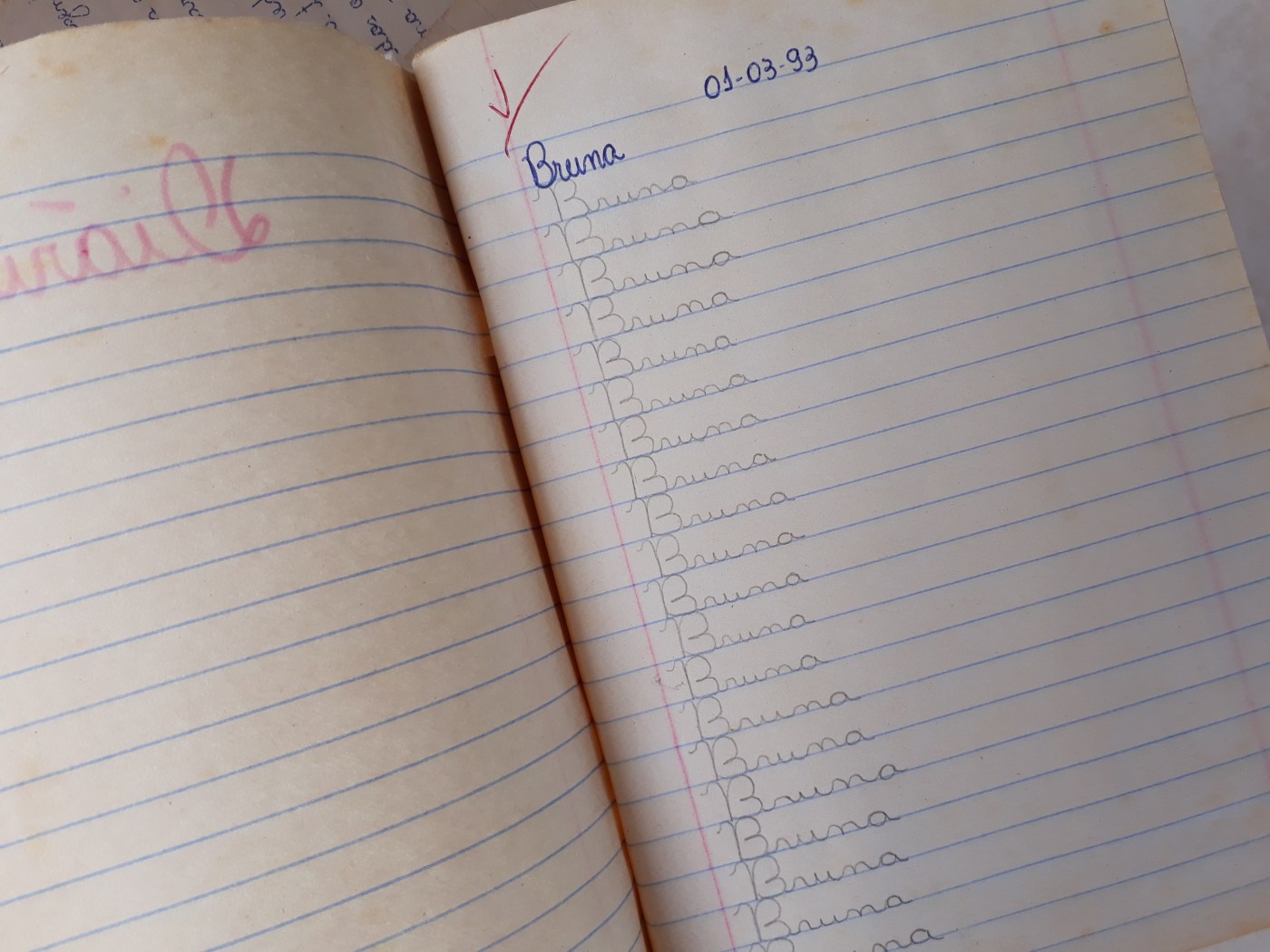 A Bruna tem infinitas lembranças da sua primeira escola: lembra-se da amiga que levava virado de feijão (o melhor do mundo!), das conversas e brincadeiras, de sentar-se junto com os amigos e ajudá-los nas tarefas, do dia em que conheceu a sua “melhor amiga”, das aulas de educação física no “campo” (as crianças faziam aula no campo de futebol, que ficava próxima à escola), dos passeios à pé com a turma pelas estradas de terra, das festas juninas com roupas verdadeiramente caipiras… A menina se lembra do dia que levou a chupeta no bolso da calça, das aventuras na perua e no ônibus escolar, do carinho da merendeira, da deliciosa polenta com carne moída, dos dias que hasteavam a bandeira do Brasil, das músicas que cantavam e dançavam, em especial, a primeira música do dia: